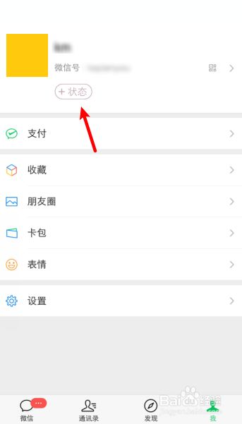 手机打开微信,在我页面,点击“状况”。