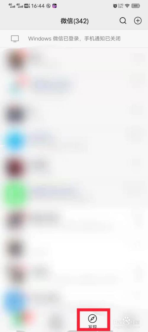 在屏幕下面找到”发现“并点击。