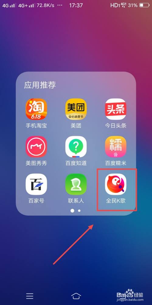 如图,打开手机并点开【全民K歌】。