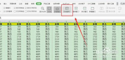 打开冻结窗口,选择第一个【冻结到第一行】,表格的某行就被冻结了,上下浏览页面的时辰就便利多了(如图所示)