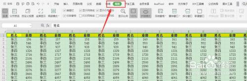 【4】打开冻结窗口,选择第一个【冻结到第一行】,表格的某行就被冻结了,上下浏览页面的时辰就便利多了