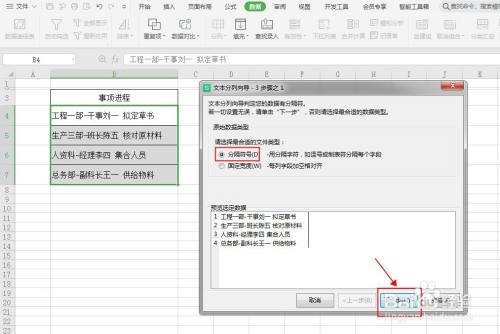 按照文本的分隔环境,选择对应的分隔号,点击下一步。