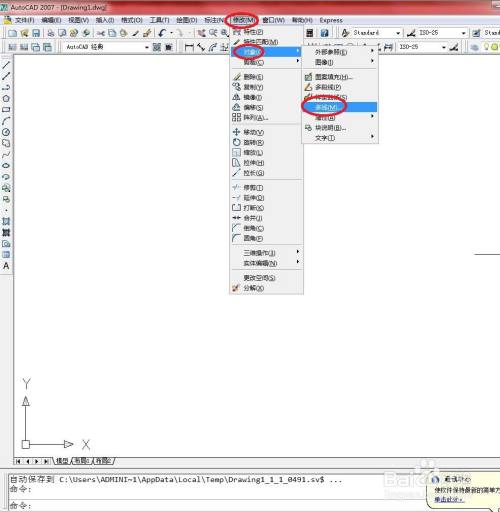 第一种:执行【点窜】→【对象】→【多线】菜单号令,如下图所示