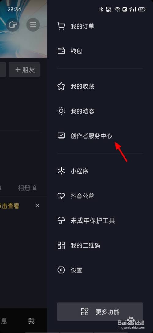 在菜单页面,点击 创作者办事中间;