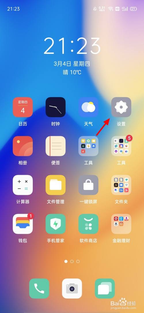 在手机桌面,点击 设置;