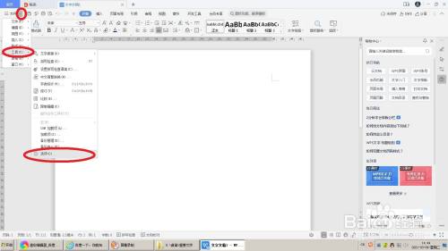 在文档的左上角。点击“文件”旁边的那个小箭头,在“东西”中点击“选项”。