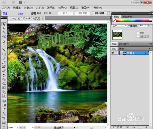 点击文字东西,设置好字体、字号,输入高山流水;