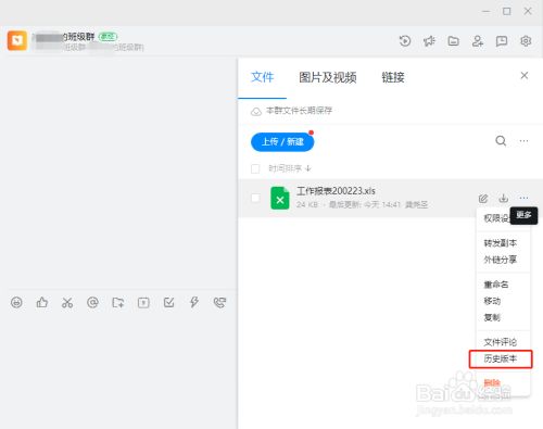 进入群聊后,点击右上方的文件图标;