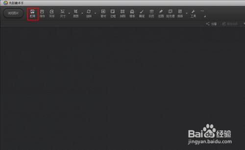 第一步:打开光影魔术手软件,选择菜单栏中的“打开”选项。