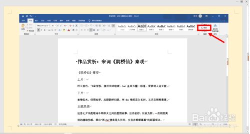 第一步,首先点击打开“作品赏析:宋词《鹊桥仙》秦不雅”文档。