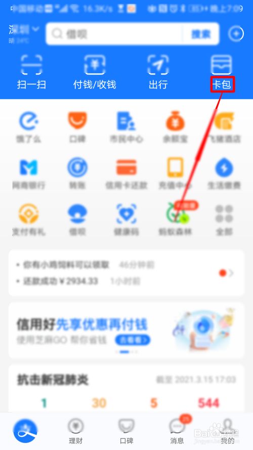 - 2在右上偏向,找到卡包。
