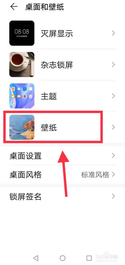 点击进入【桌面和壁纸】页面,找到【壁纸】选项。