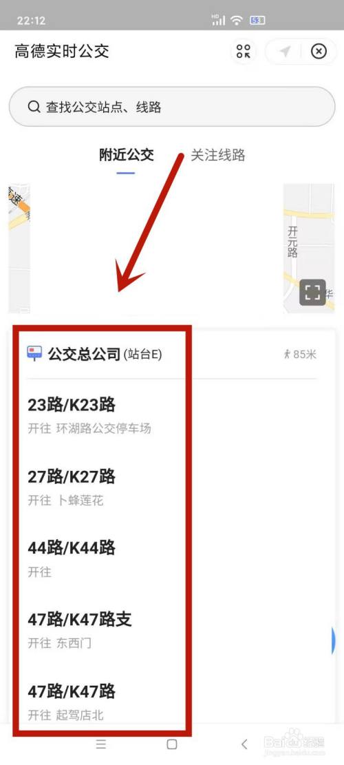 3.点击开启定位选项,随后界面就会显示出本身地点地的公交及时位置。
