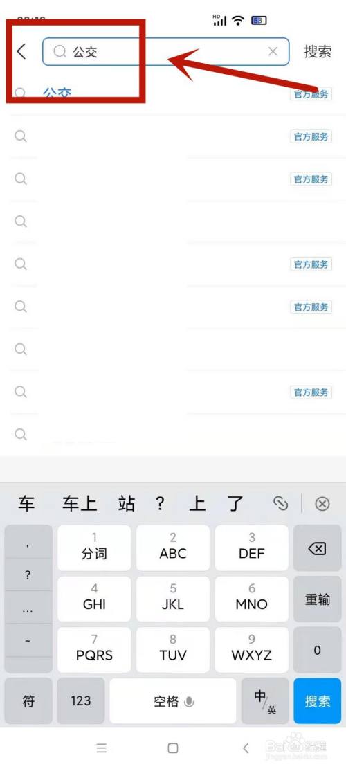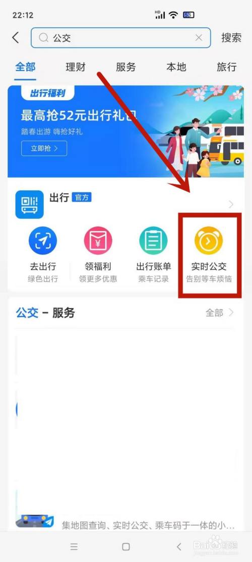 2.编纂搜刮公交,找到后点击进入,点击页面的及时公交。