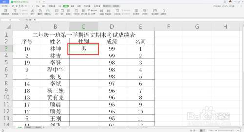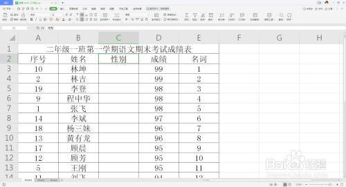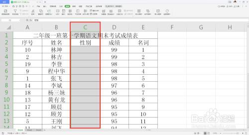 首先打开excel,打开表格,框选性别列。
