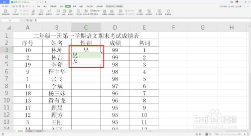 点击题目栏--数据,找到有用性--设置--序列,在来历项里输入“男”,“,”,“女”,注重逗号要在英文半角状况下输入。