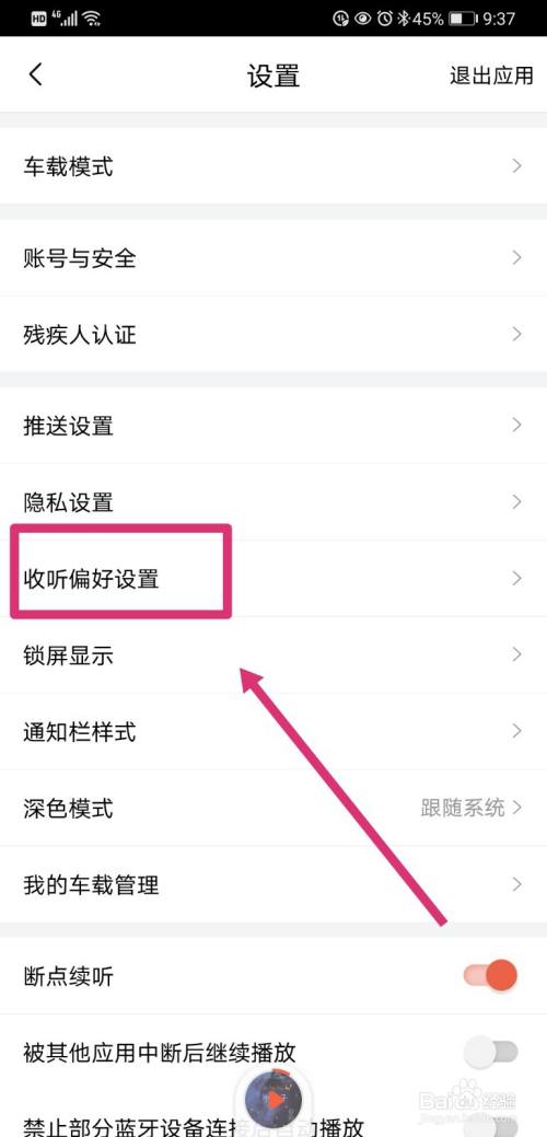 找到“收听偏好设置”,点击进入;