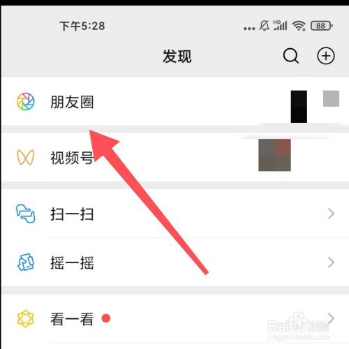 在发现页面中,我们点击第一栏,进入朋友圈。