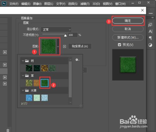 打开图案叠加之后,我们选择草的图案,点击【确定】,如图所示。