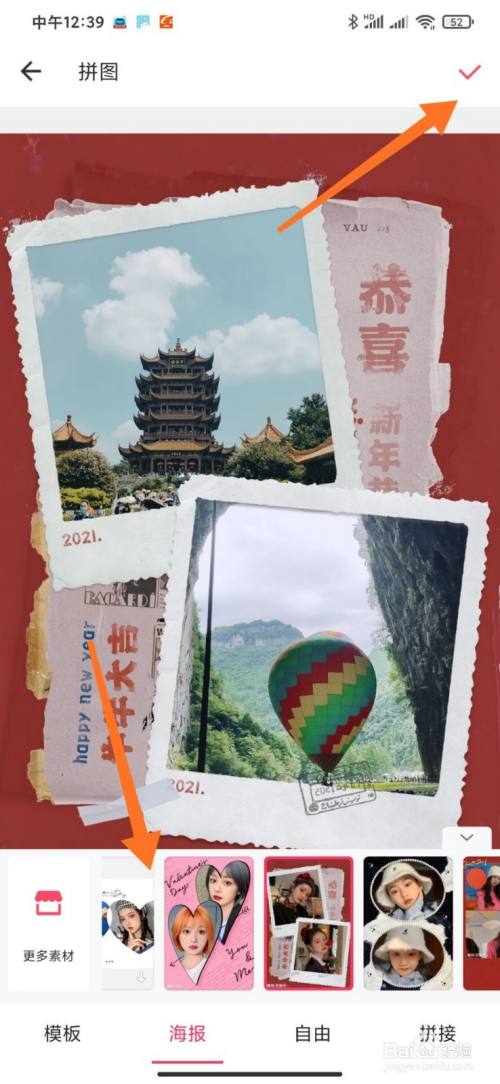 最后选择合适的模板,点击右上角的对√就可以保留了。