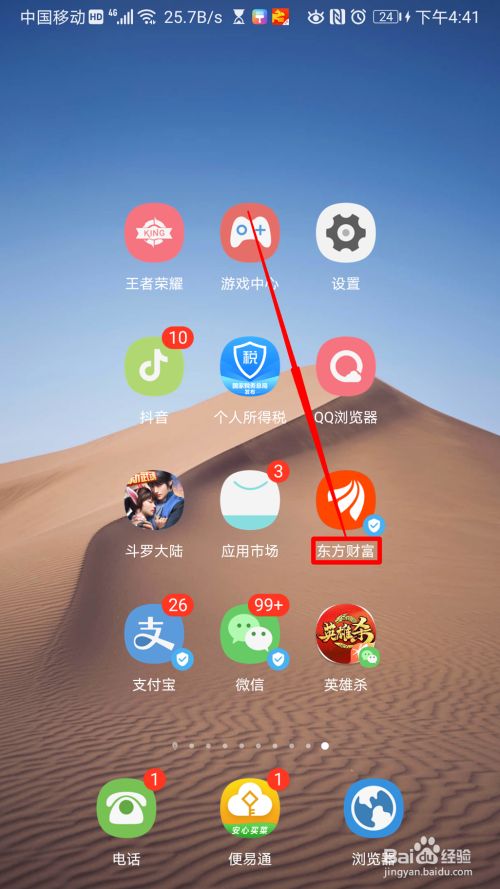 - 1打开手机进入后,寻找东方财富。因为色彩或者亮度的原因,可能不轻易找不到,请多一些耐烦。