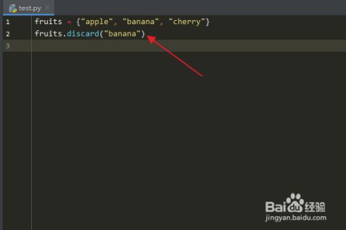 继续输入:“fruits.discard("banana") ”,点击Enter键。
