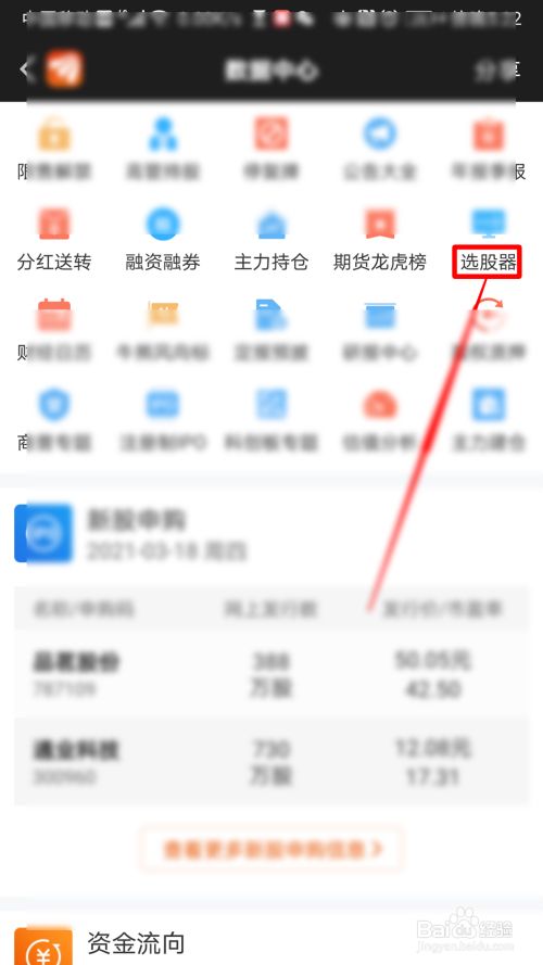 - 3在右上偏向,点击选股器。