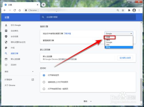 鄙人拉列表中,选择百度或其他搜刮引擎。这样设置后,便可在国内正常利用谷歌浏览器了。