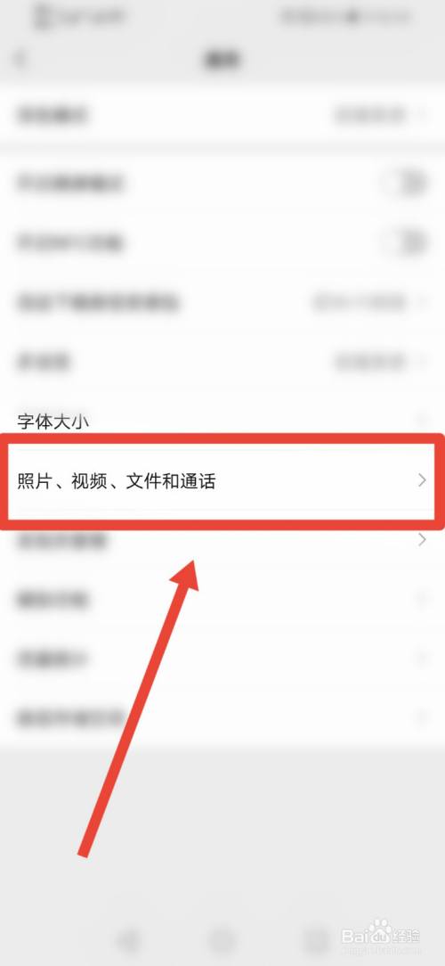 进入之后,我们找到照片、视频、文件和通话菜单,点击并进入。