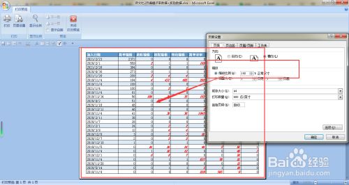 点击“页面设置”,打开对话框,选择打印偏向“横标的目的”。