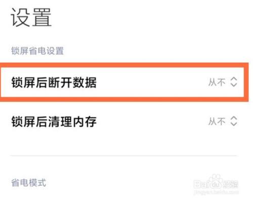 3、点击【锁屏后断开数据】。