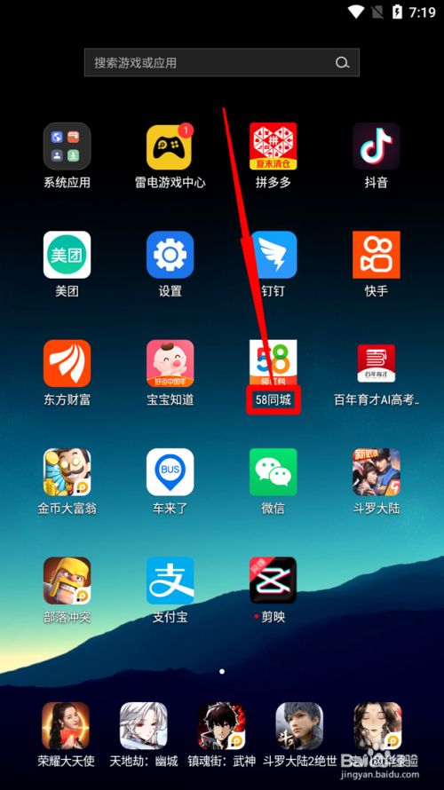 - 1打开手机进入后,寻找58同城。若是无法找到,请翻页或者上下滑动查找。