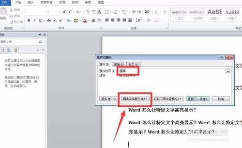 在跳出的小窗中输入想要高亮显示的文字,如下图,在小窗下方可以选择【凸起显示】。