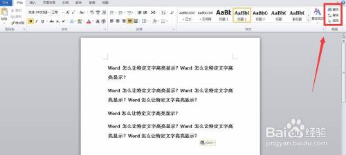 首先,我们打开word文档,如下图所示,在页面右上角找到【查找】。