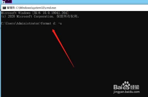 在打开的窗口中输入format d: -u,按下回车键,即可格局化。
