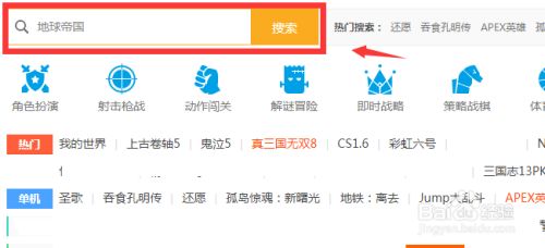 进入游迅官网链接后,鄙人方输入框中,输入地球帝国,而且点击搜刮
