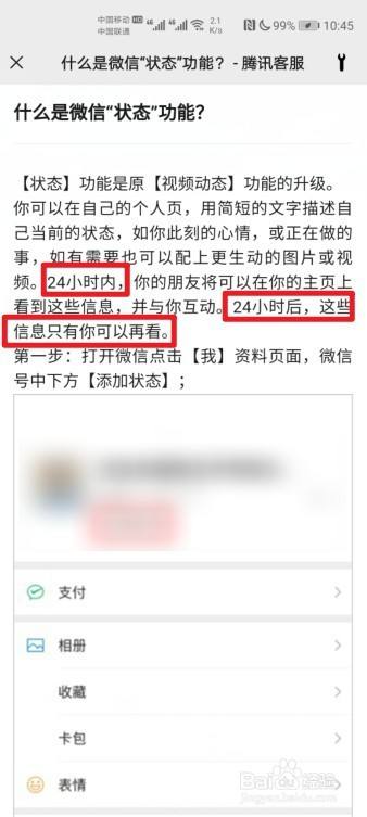 即可查看微信状况不管是图文或者是视频,都只有【24小时】展览。