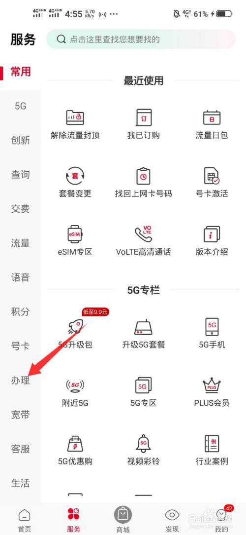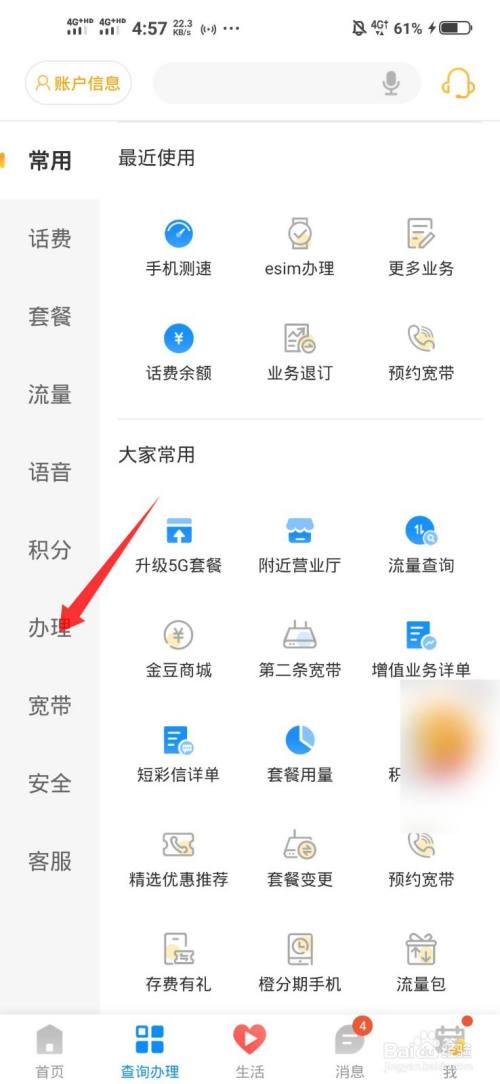 打开联通手机营业厅,点击办事。