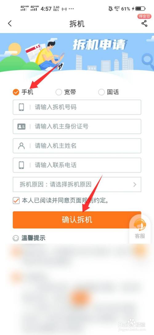 输入手机卡的信息,点击确认拆机直到刊出当作功。