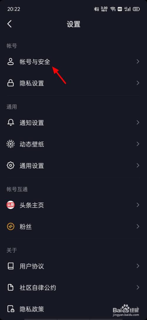 进入设置界面,我们需要点击进入【帐号与平安】;