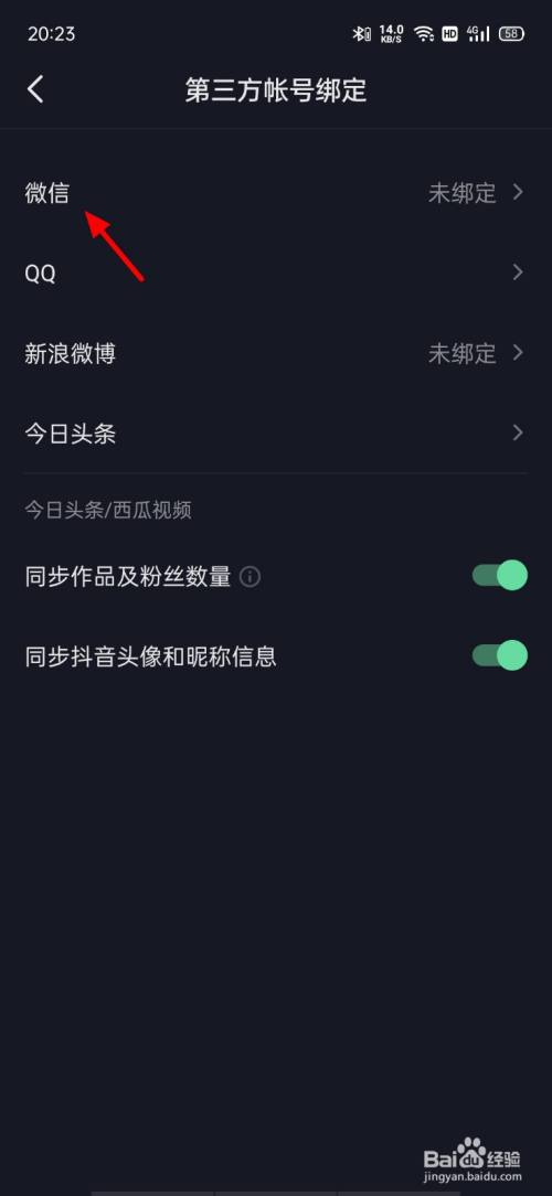 进入第三方帐号绑定界面,我们需要点击【微信】;