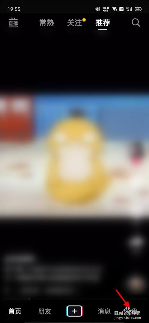 打开抖音APP在首页页面,我们需要点击右下角【我】