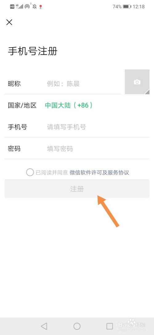 设置您小号的昵称、手机号及密码,勾选赞成和谈,点击“注册”。