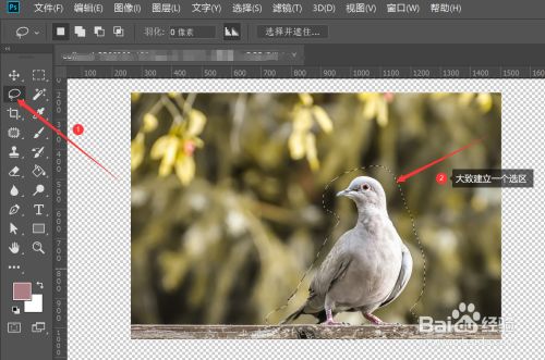 在左侧东西栏中选择套索东西—>利用套索东西给本家儿体对象绘制选区