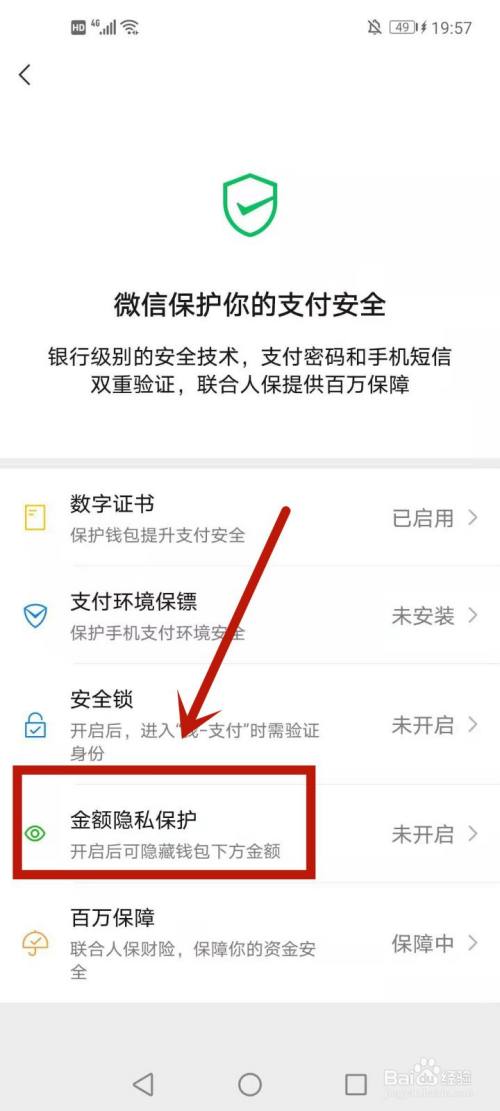 点击金额隐私庇护选项。