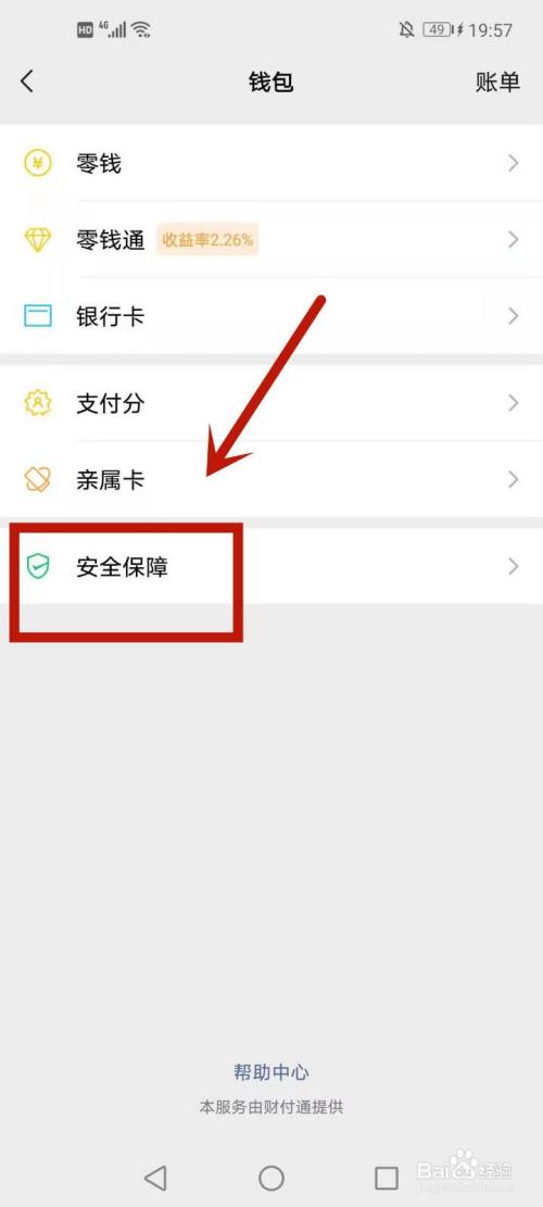 2.点击钱包在,再点击平安保障进入金额隐私庇护。