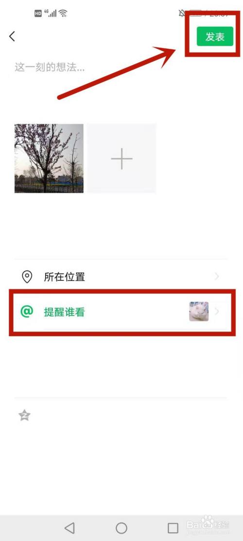 3.点击页面的@提醒谁看,选上本身想@的老友后点击确定。