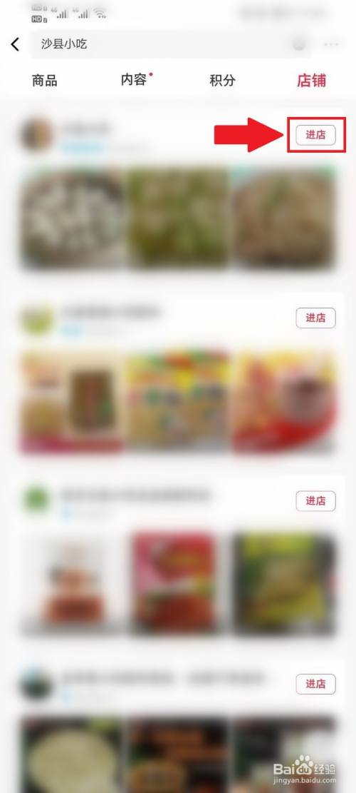 点击顶部的搜索框,搜刮“店肆名字”,进入搜刮页面。