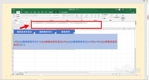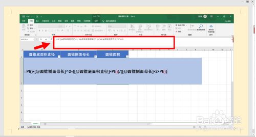 第四步,接着输入函数公式PI,再乘以圆锥底面积直径除以2的平方值。计较得出圆锥的底面积。