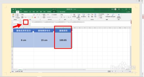 第五步,最后点击“输入”图标,计较得出圆锥面积。并保留文件。这样就计较好了。